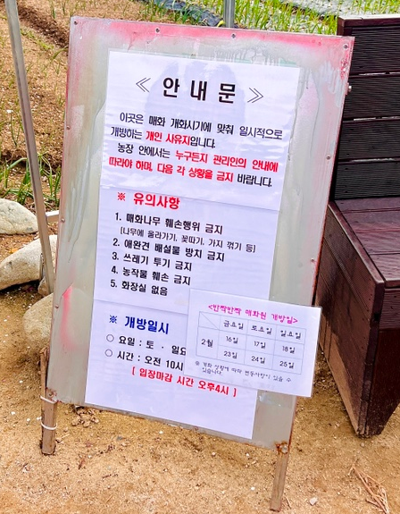 입구에서 40m 정도 올라가면 반짝반짝 매화원 출입문이 보이는데,